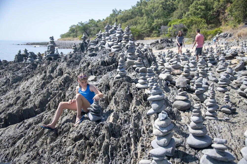 Further up the road we stopped at Balancing Rocks beach and added our own cairns to the collection. We spent nearly an hour here, admiring the stacks of rocks and building our own precarious piles of stones.