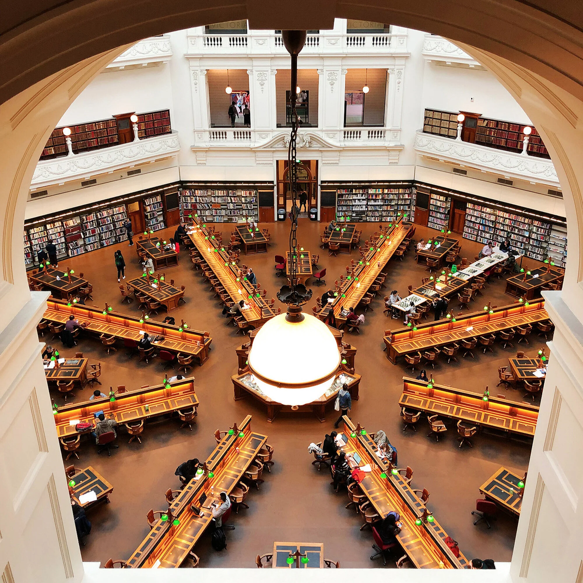 We arrived in Melbourne on a Tuesday evening, so our first full day in the city began on Wednesday morning with a visit to the State Library Victoria. It was lovely inside, with a large reading room in the center and various art, history, and literature exhibits on the surrounding floors.
